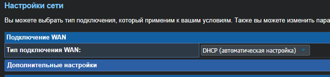 7. «Настройки сети» – «Основные» – «Тип подключения WAN», выбираем «DHCP (автоматическая настройка)», нажимаем «Применить» в самом низу страницы.